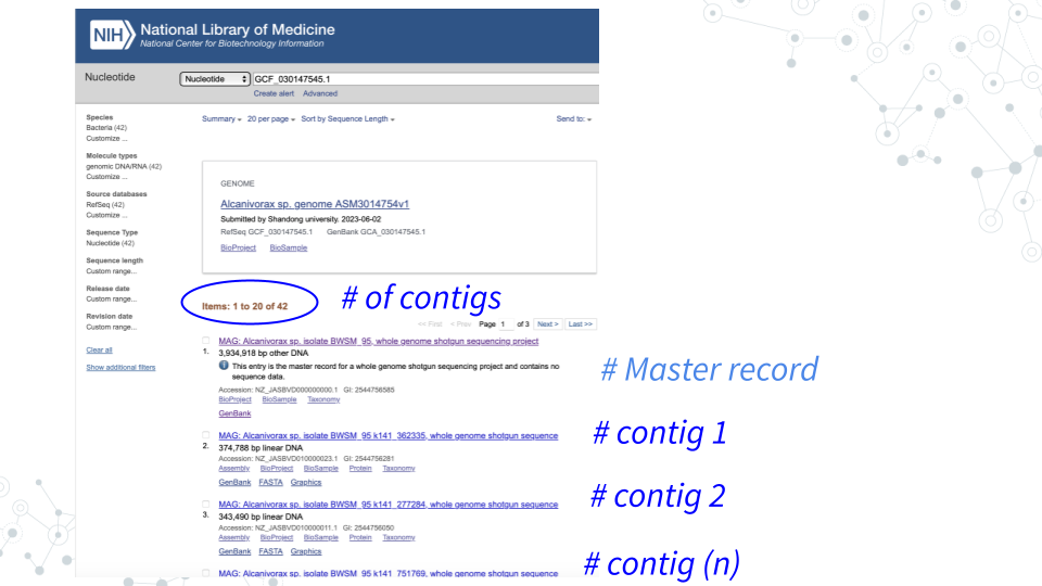You will see that MAG GCF_030147545.1 is composed of 42 contigs.